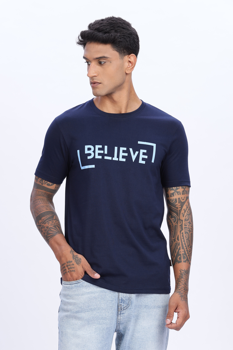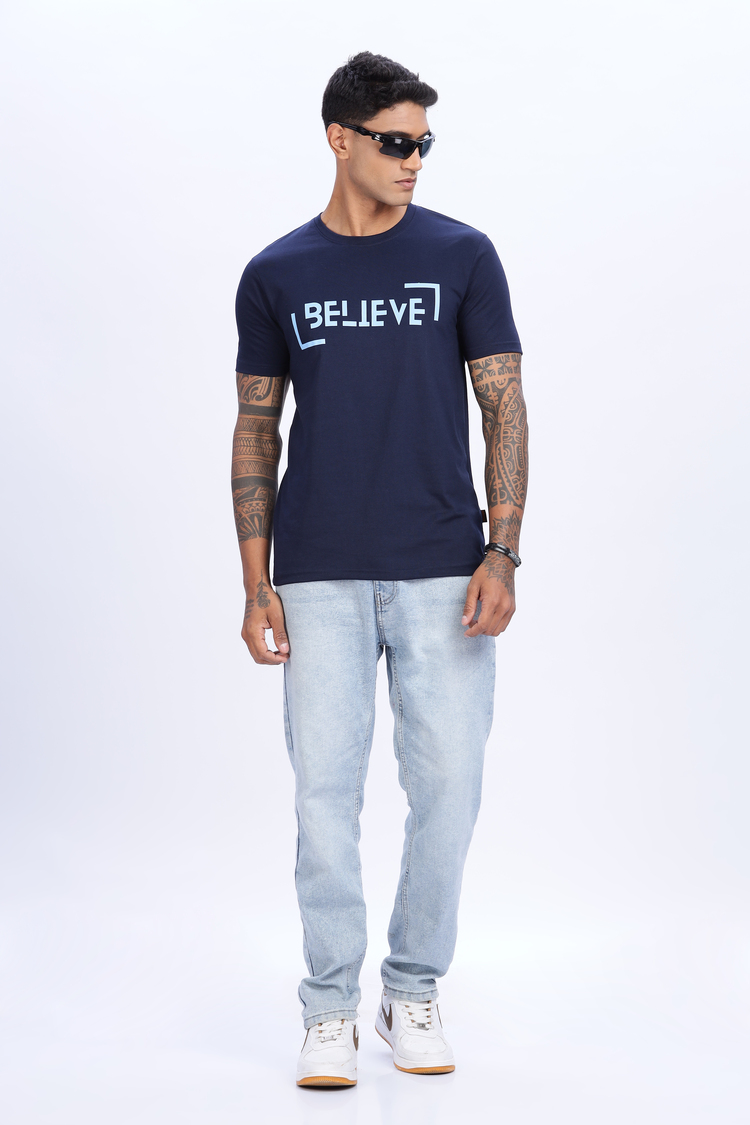 Look sharp and stay comfortable with this slim fit round-neck T-shirt. Made from a soft cotton-polyester blend (60% Cotton, 40% Polyester), it’s breathable, durable, and features vibrant graphic prints. Perfect for casual wear or pairing with jeans and joggers.
