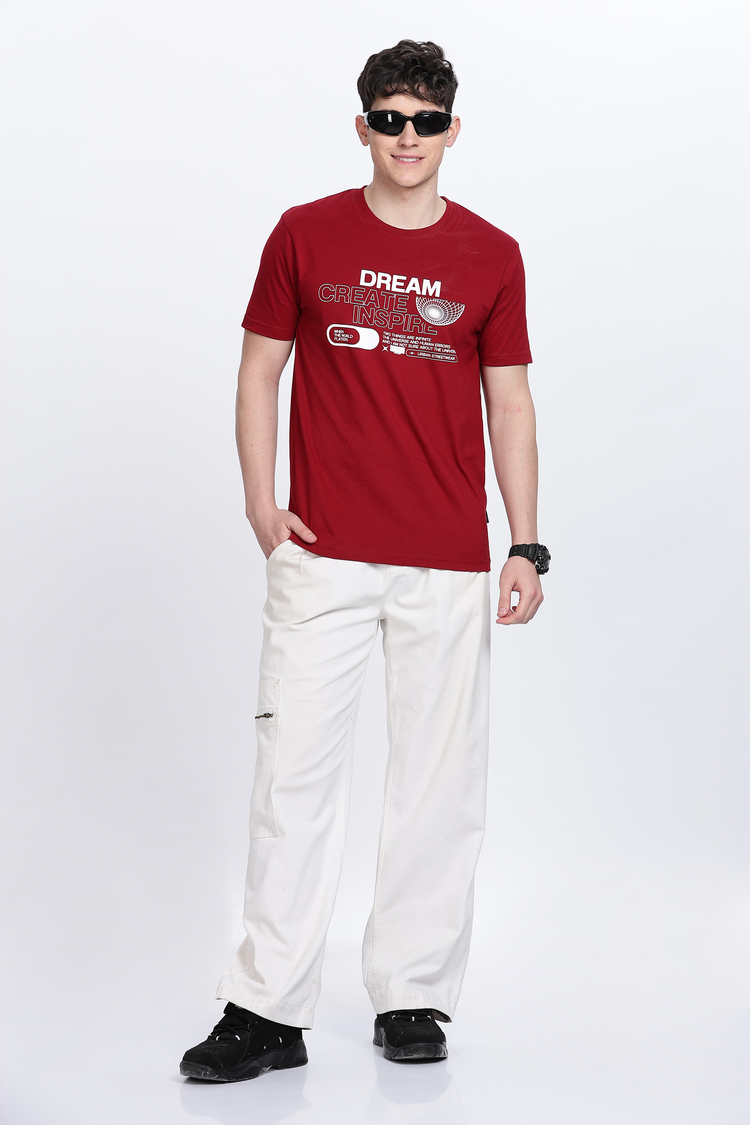 Look sharp and stay comfortable with this slim fit round-neck T-shirt. Made from a soft cotton-polyester blend (60% Cotton, 40% Polyester), it’s breathable, durable, and features vibrant graphic prints. Perfect for casual wear or pairing with jeans and joggers.