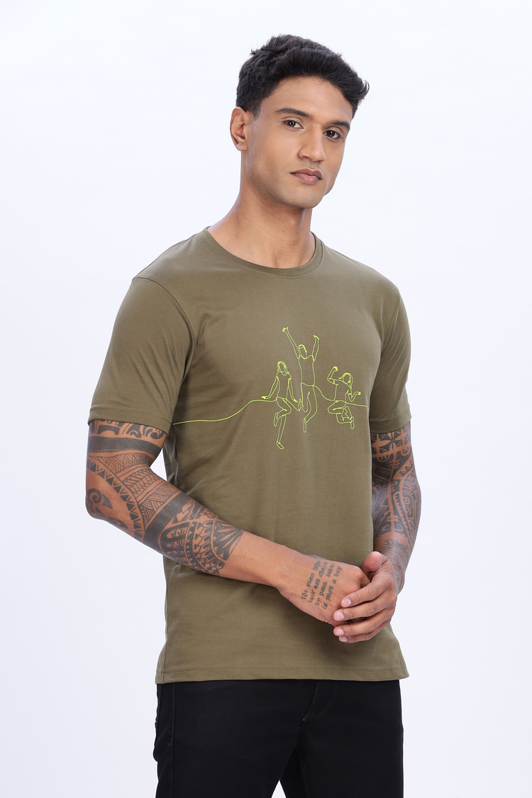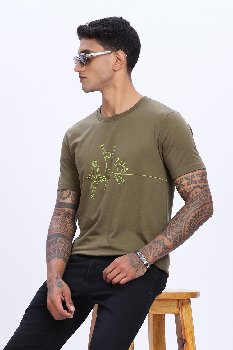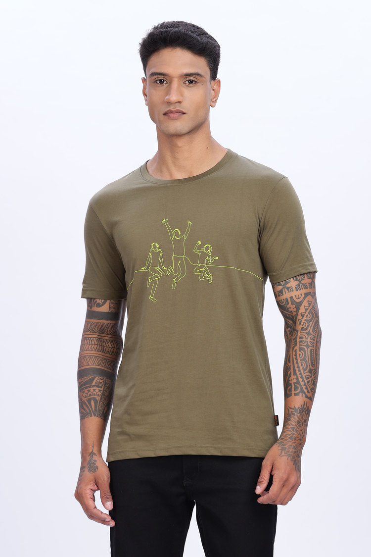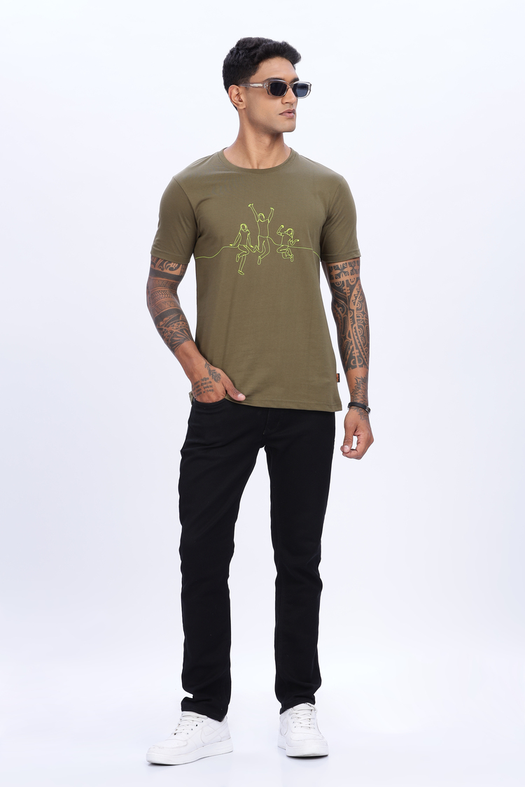 Look sharp and stay comfortable with this slim fit round-neck T-shirt. Made from a soft cotton-polyester blend (60% Cotton, 40% Polyester), it’s breathable, durable, and features vibrant graphic prints. Perfect for casual wear or pairing with jeans and joggers.