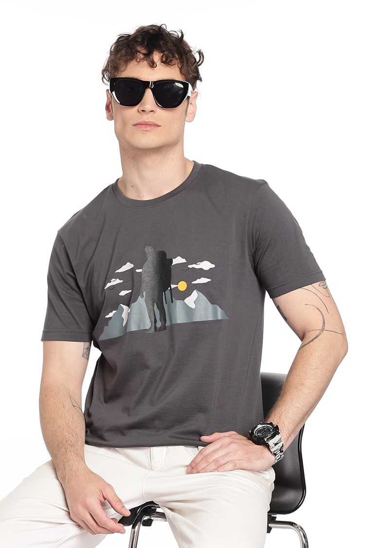 Description: Graphic Printed, Round Neck T Shirt, Slim Fit, Short Sleeves