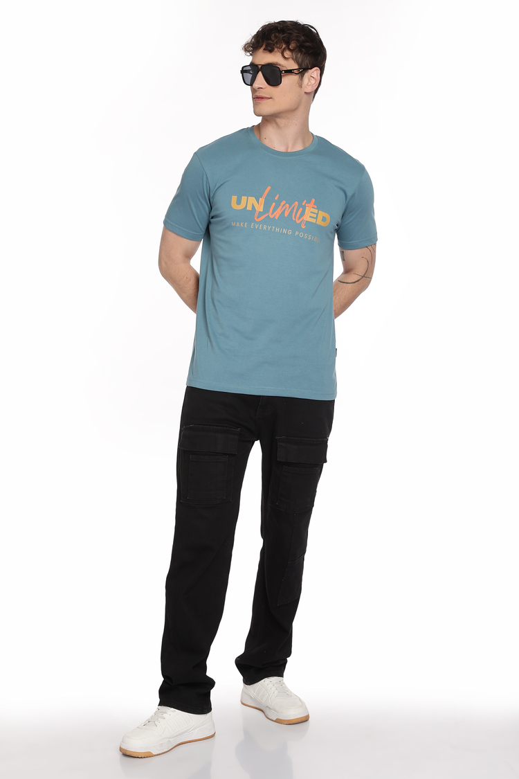 Look sharp and stay comfortable with this slim fit round-neck T-shirt. Made from a soft cotton-polyester blend (60% Cotton, 40% Polyester), it’s breathable, durable, and features vibrant graphic prints. Perfect for casual wear or pairing with jeans and joggers.